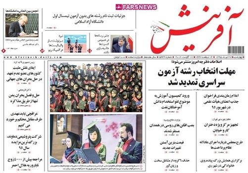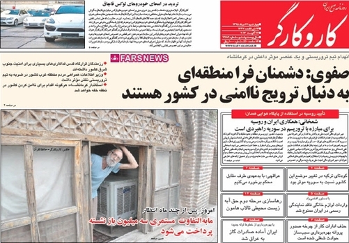صفحه‌اول روزنامه‌های چهارشنبه 27 مرداد 95