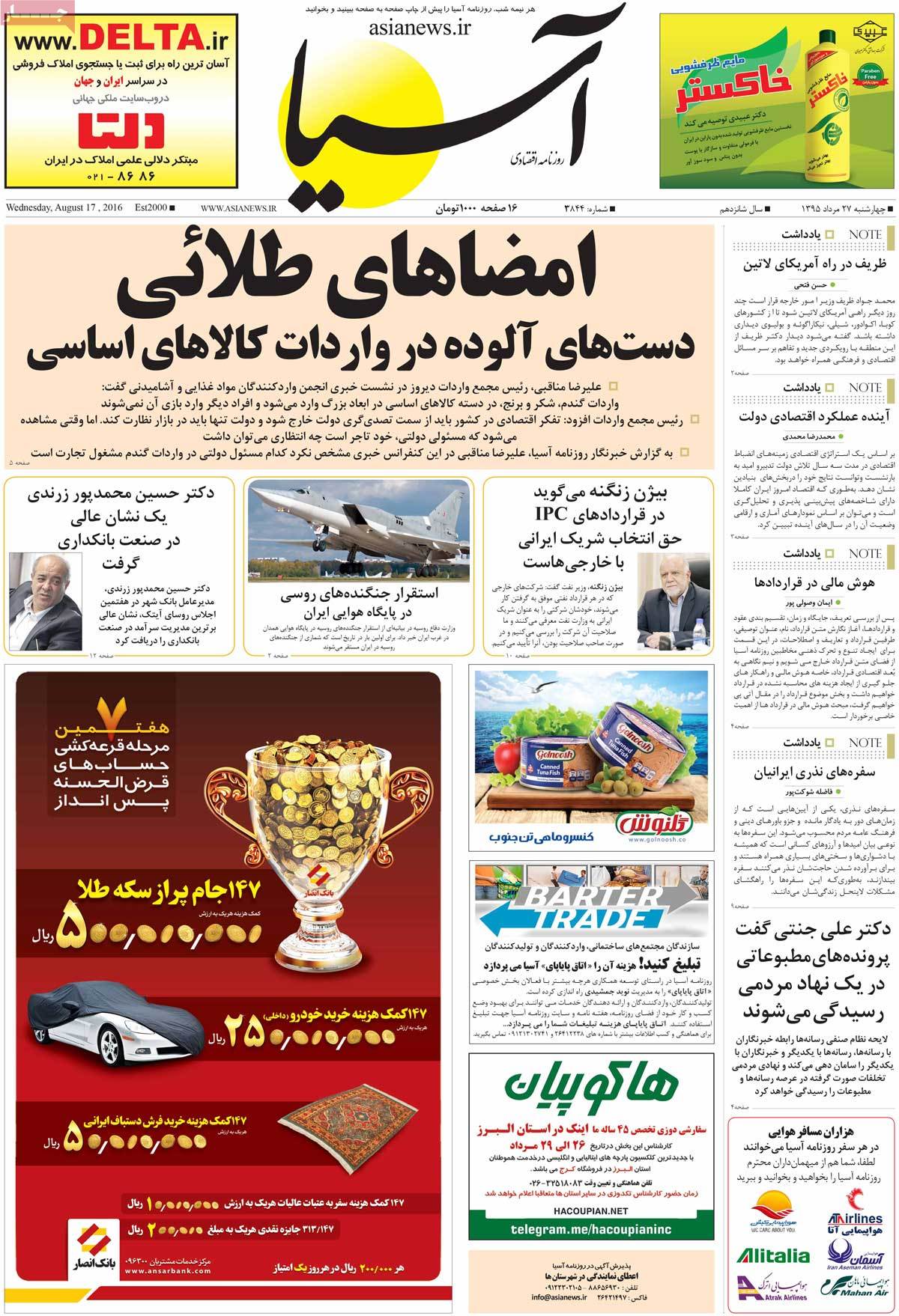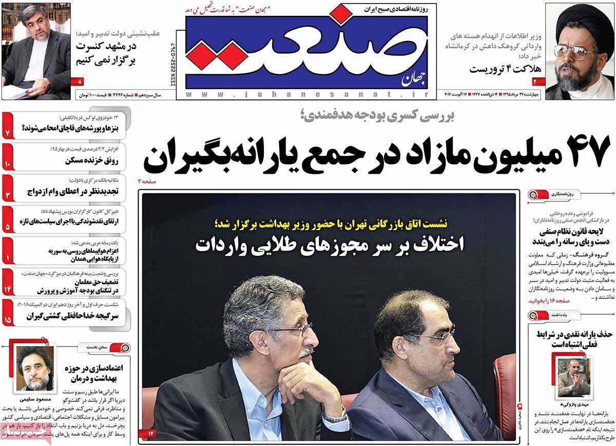 صفحه‌اول روزنامه‌های اقتصادی چهارشنبه 27 مرداد 95