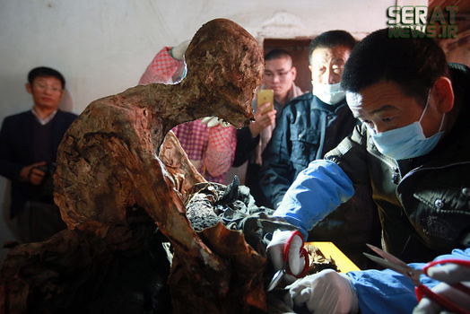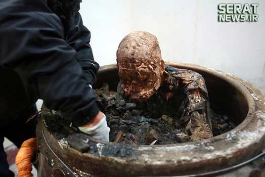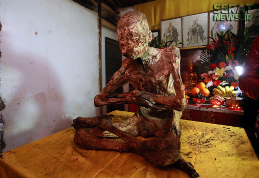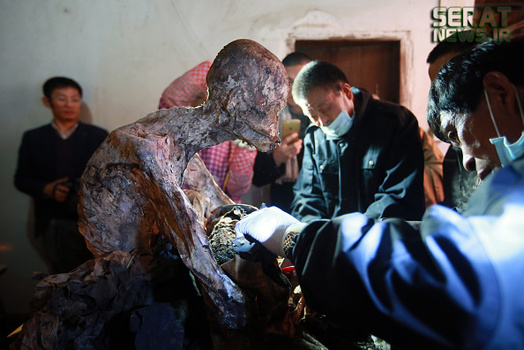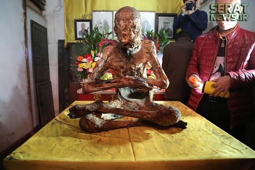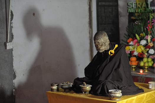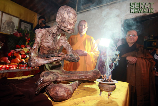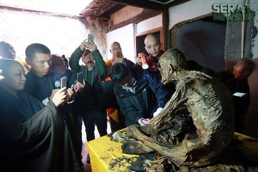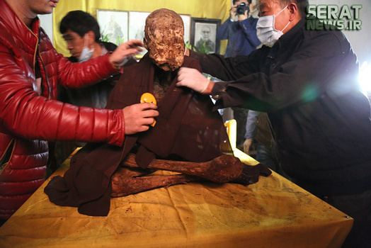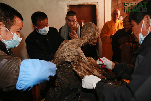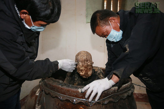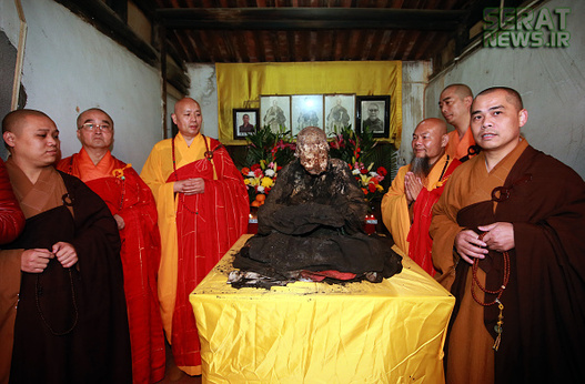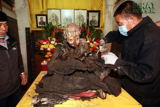 طی مراسمی جسد پوسیده "فوهو" راهب بودایی که سال 2012 در سن 94 سالگی درگذشت از کوزهای که در آن قرار داشت بیرون آورده شد تا طلاکاری شود.