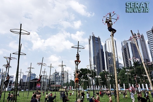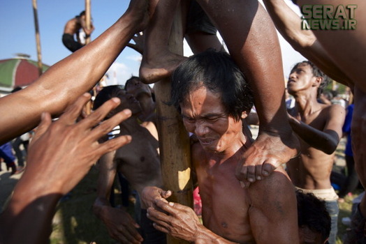 تصاویر/ مسابقه بالارفتن از ستون صاف و روغنی