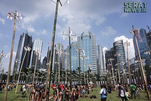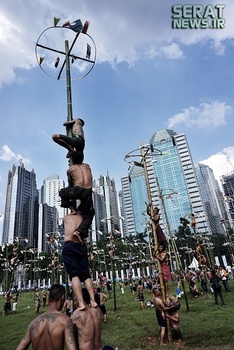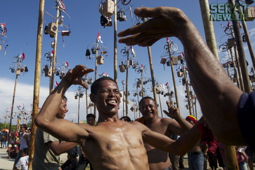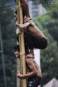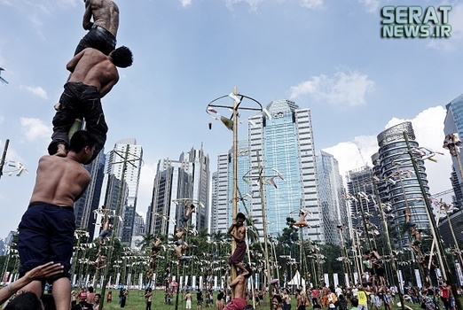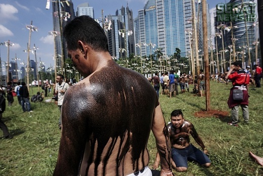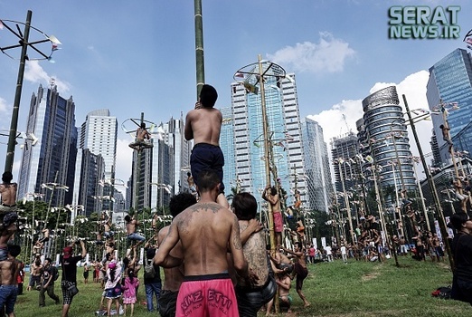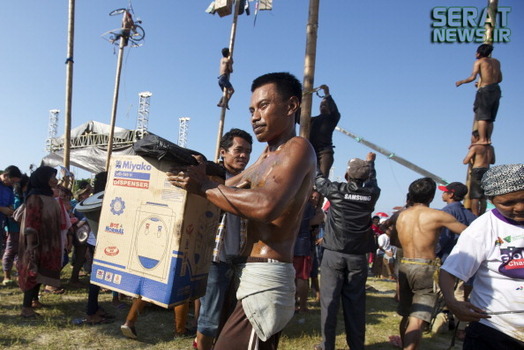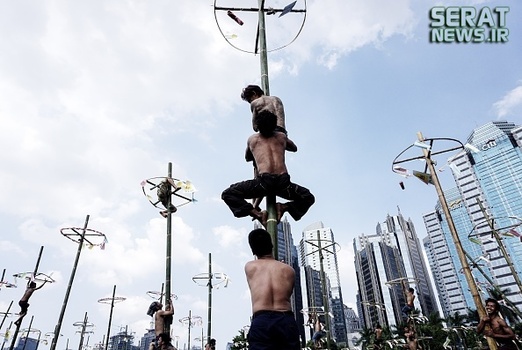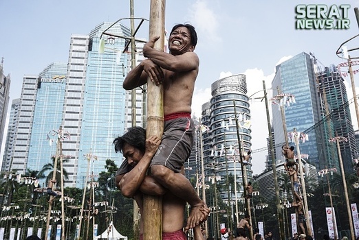 به مناسبت هفتادویکمین سالروز استقلال اندونزی مراسم جشنی در این کشور برگزار شد. یکی از دهها جشنی که مردم این کشور برگزار میکنند "پنجات پینانگ" نام دارد که در آن چوبهای بلندی که از تنه درختان گرفته شده و سطحی صاف دارد را با روغن گریس، چرب میکنند و بالای آن جایزه  نفره برنده را قرار میدهند. شرکت کنندگان نیز که نمیتوانند تنها از آن بالا بروند به صورت گروهی همکاری میکنند و با اتحاد و شرط تقسیم جایزه، گروهی مسابقه را دنبال میکنند.