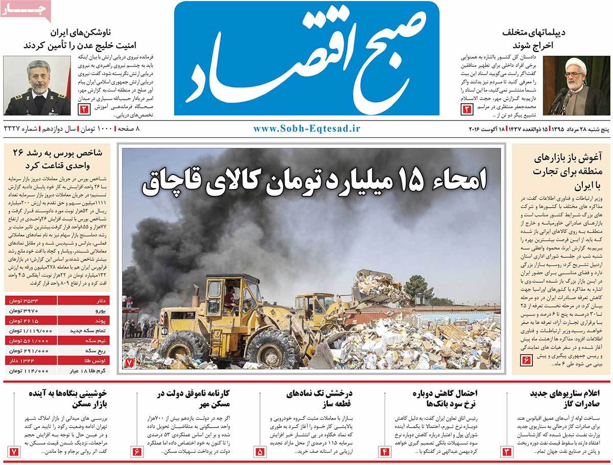 صفحه‌اول روزنامه‌های اقتصادی پنجشنبه 28 مرداد 95