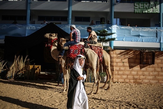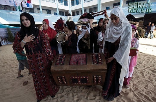 کودکان و نوجوانان دختر و پسر فلسطینی طی یک اقدام فرهنگی یک مراسم ازدواج برگزار کردند. این مراسم با حمایت آزانس امداد و کار سازمان ملل متحد (آنروا) در خان یونس واقع در جنوب غزه برگزار شد.