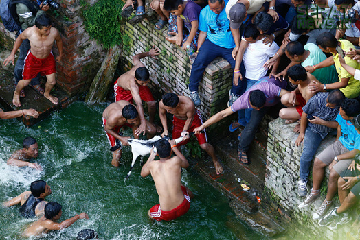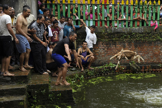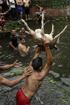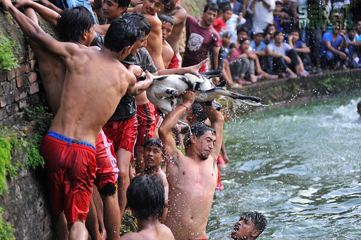 مردم روستای خوکانا در کاتماندو پایتخت کشور نپال همه ساله جشنوارهای عجیب و وحشیانه برگزار میکنند که در آن چند بز در آب انداخته شده و متعاقب آن مردها وارد آب شده و برای خفه کردن و کشتن بزها به رقابت میپردازند. این جشنواره که قدمت زیادی در این منطقه دارد خشم نهادهای دفاع از حقوق حیوانات را در پی داشته است. دستکم 30 دقیقه زمان میبرد تا بزهایی که در آب انداخته شدهاند کشته شوند و آنان در این اقدام غیرانسانی ذره ذره جلوی چشم تماشاگران جان میدهند.