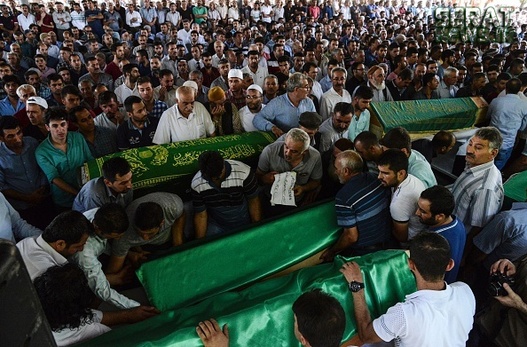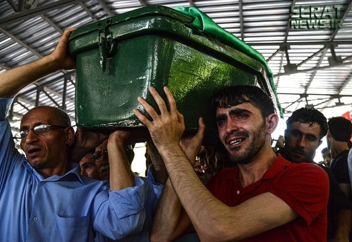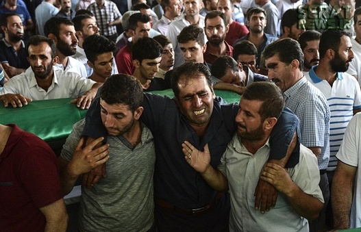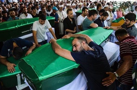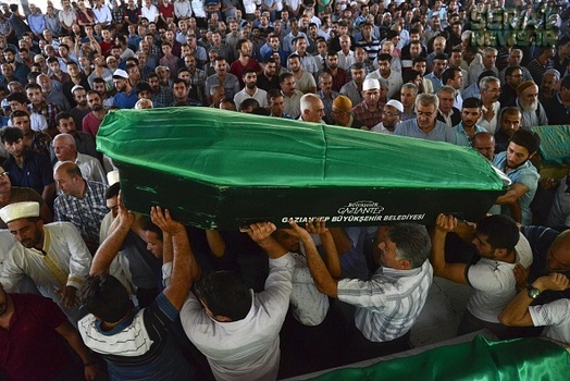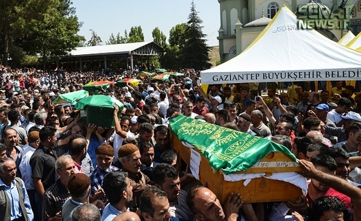 مردم شهر غازی عینتاب ترکیه پیکر 50 قربانی انفجار انتحاری در مراسم عروسی این شهر را تشییع کردند. هنوز هیچ گروهی مسئولیت این انفجار را بر عهده نگرفته اما اردوغان رییس جمهور ترکیه عامل انفجار را کودکی 12 یا 14 ساله معرفی کرده است. این حمله تروریستی در آقدره، در منطقه شاهینبی شهر غازی عینتاب ترکیه رخ داده است. غازی عینتاب حدود 60 کیلومتر تا مرز ترکیه با سوریه فاصله دارد