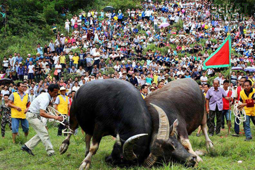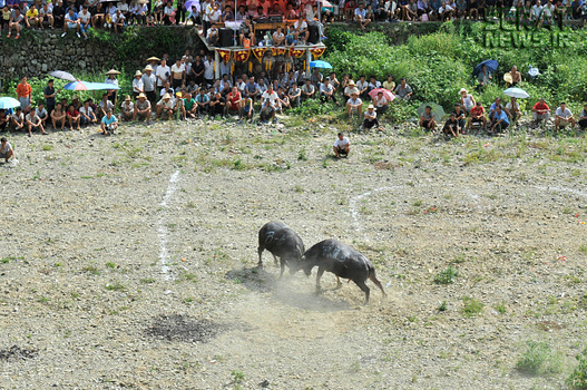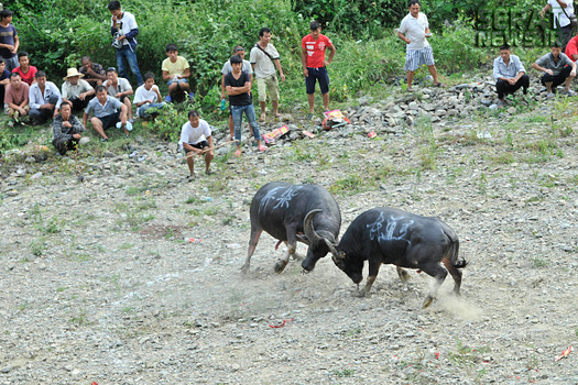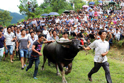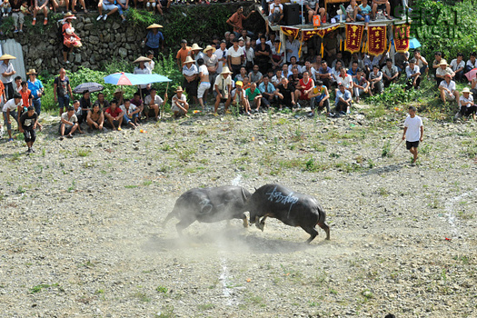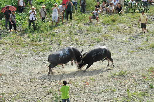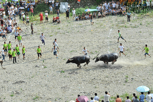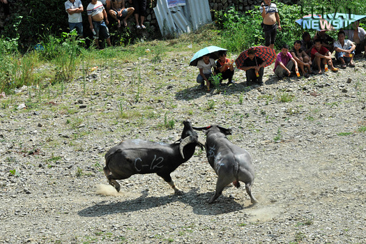 مردم شهرهای کایلی، مایو و دونگ در استان گوئیژو چین به مناسبت برداشت محصولات کشاورزی خود جشنوارهای برپا و در آن گاوهای نر را با یکدیگر به جنگ انداختند. صدها نفر از مردم از 20 روستای سه منطقه چین در این جشنواره حضور داشتند.