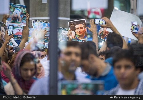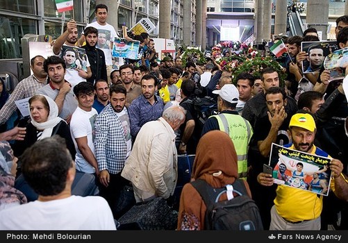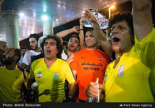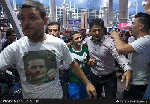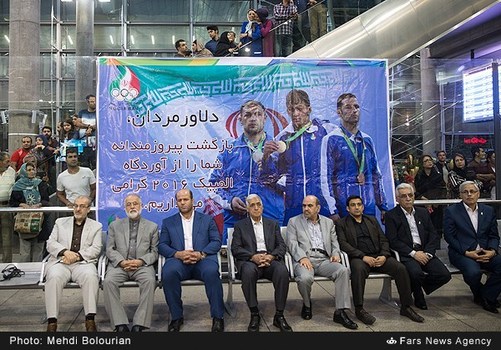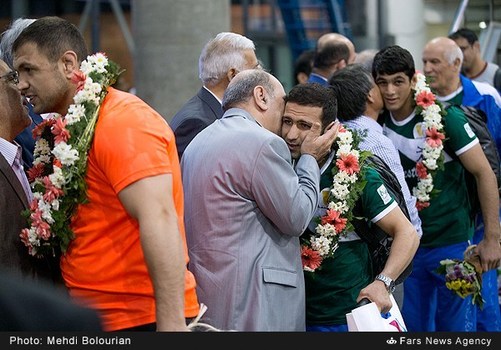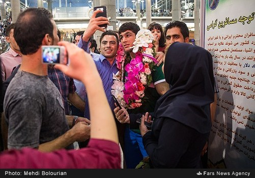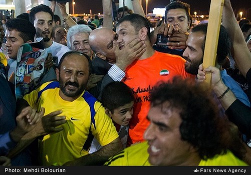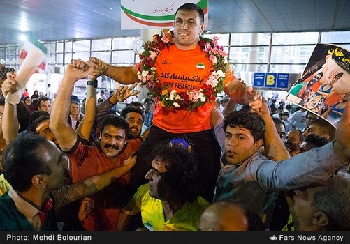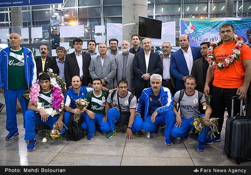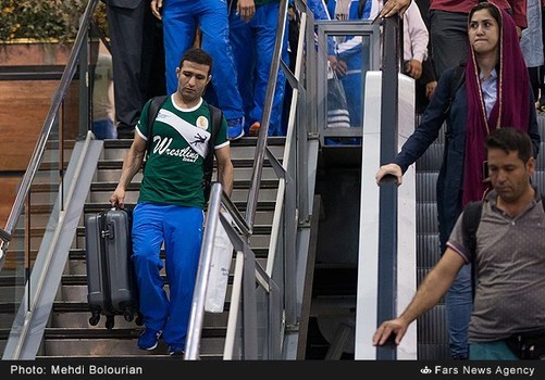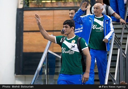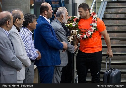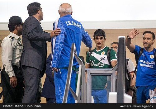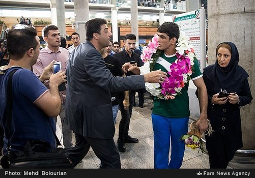اعضای تیم ملی کشتی آزاد بامداد پنج شنبه چهارم شهریور در میان استقبال گسترده و پرشور مردم و با حضور مسئولین از طریق فرودگاه بین المللی امام خمینی (ره) به تهران بازگشتند. مناف هاشمی معاونت پشتیبانی و مالی وزارت ورزش و جوانان و شاهرخ شهنازی دبیرکل کمیته ملی المپیک با حضور در فرودگاه از کاروان تیم ملی کشتی آزاد ایران استقبال کردند. جمع کثیری از علاقمندان و دوستداران کشتی نیز با حضور در فرودگاه به قهرمانان کشتی ایران خوشامد گفتند.