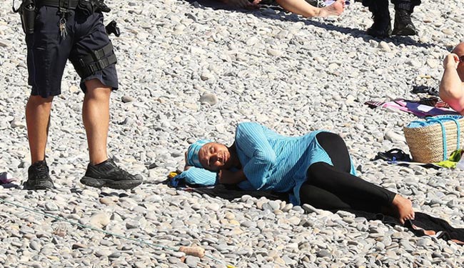 صراط: پلیس فرانسه زنی که با لباس شنای اسلامی به ساحل "نیس" آمده بود را وادار به بیرون آوردن آن کرد.