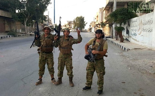 در ادامه لشکر کشی ارتش ترکیه به خاک سوریه که از نخستین ساعات روز چهارشنبه آغاز شد، تروریستهای ارتش آزاد سوریه توانست با حمایت ارتش ترکیه، ضمن ورود به شهر جرابلس، مرکز این شهر را به اشغال خود در آورد.