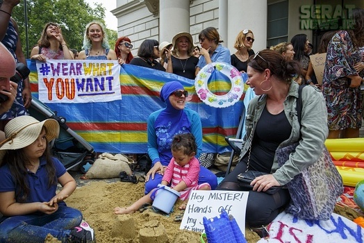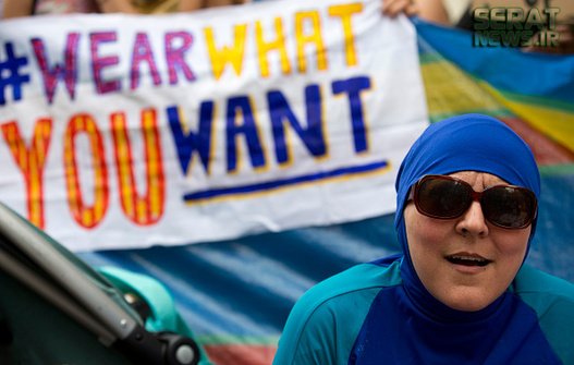 تصاویر/ تجمع زنان علیه ممنوعیت لباس شنای اسلامی