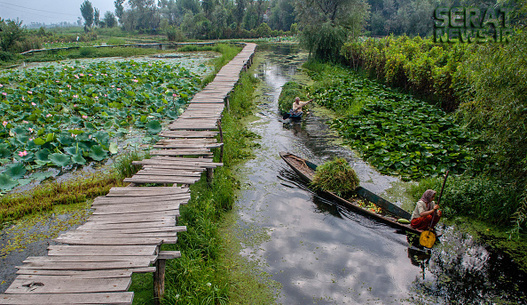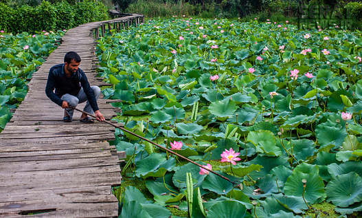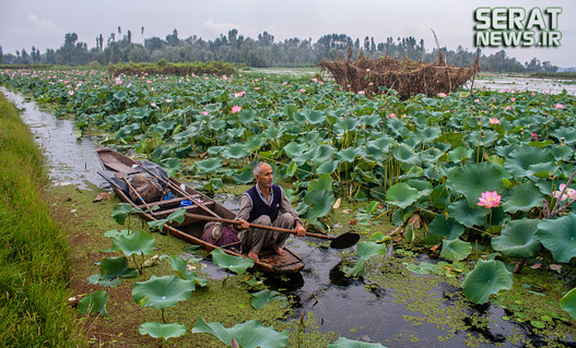 تصاویر شگفتانگیز از نیلوفر آبی در دریاچه کشمیر