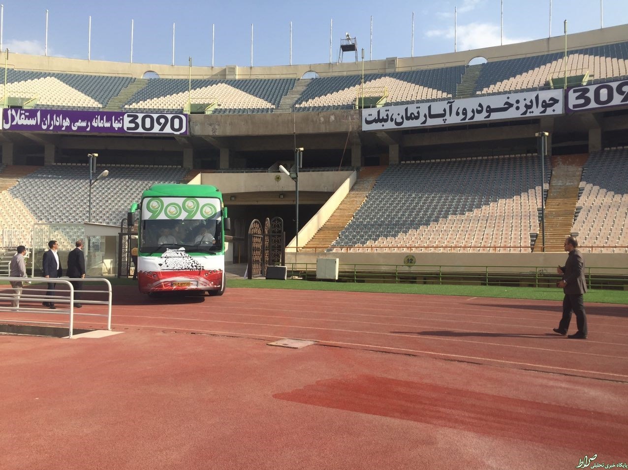 به گزارش تسنیم، ملیپوشان فوتبال کشورمان با اتوبوس مخصوص تیم ملی از هتل محل اقامت خود به ورزشگاه آزادی رسیدند تا به این شکل، از اتوبوس تیم ملی نیز رونمایی شود.