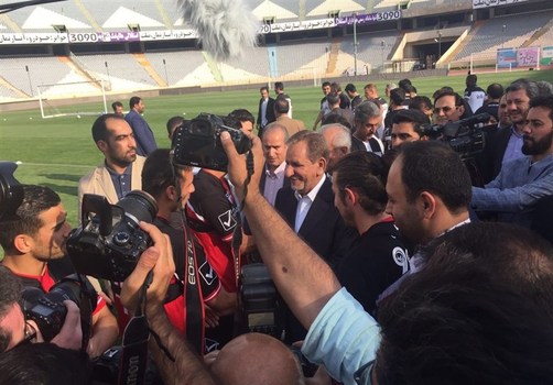 به گزارش تسنیم، اسحاق جهانگیری معاون اول رئیس جمهور عصر امروز (دوشنبه) برای بازدید از تمرین تیم ملی کشورمان در ورزشگاه آزادی حاضر شد.