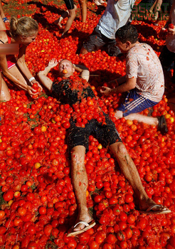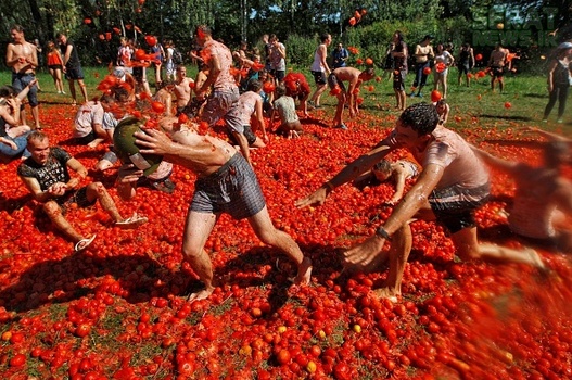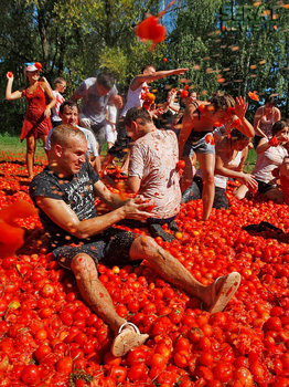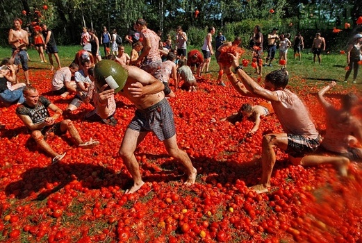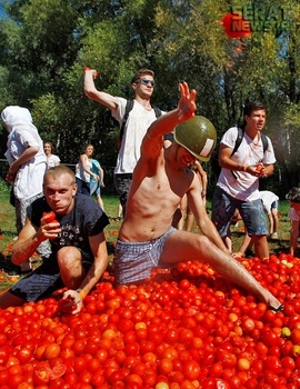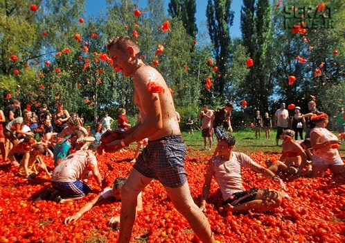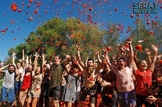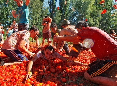 جشنواره مبارزه با گوجه فرنگی با شرکت دهها نفر از مردم این کشور و با استفاده از صدها کیلو گوجه فرنگی در کیف پایتخت اوکراین برگزار شد.