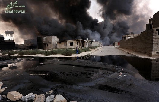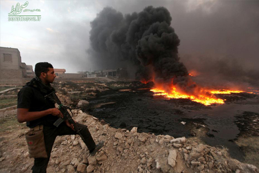 عناصر تروریستی داعش پس از خروج از منطقه راهبری القیاره در استان نینوا میزان قابل توجهی نفت خام را در خیابانهای شهر به راه انداخته و چند چاه نفت را نیز به آتش کشیدند. در القیاره دو میدان نفتی مهم قیاره و نجمه در گذشته روزانه حدود 30 هزار بشکه نفت سنگین تولید میکردند. قیاره همچنین یک پالایشگاه کوچک دارد که بخشی از این نفت را فرآوری میکند. آتش زدن تاسیسات نفتی تاکتیکی است که داعش برای فرار از پروازهای تجسسی به کار میبرد و بدین ترتیب مانع پیشروی نیروهای عراقی میشود.
