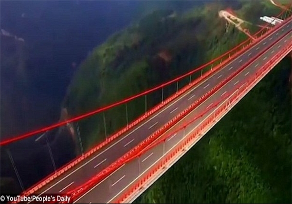 به گزارش فارس، طولانی‎ترین پل معلق جهان در سال 2015 در چین افتتاح و در سال 2016 رنگ‎آمیزی شد.