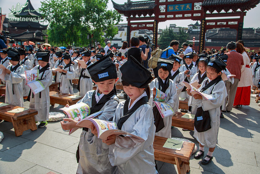 ترم جدید تحصیل کودکان در معبد کنفوسیوس در نانجینگ استان جیانگ سو چین آغاز شد. 168 کودک چینی به معبد کنفوسیوس آمدهاند تا در این معبد مکتب کنفوسیوس را فرابگیرند.  کنفوسیوس مشهورترین فیلسوف، نظریهپرداز سیاسی و معلم چینی است که در چین باستان زندگی میکرد. وی در 551 پیش از میلاد متولد و در 479 پیش از میلاد در گذشت.