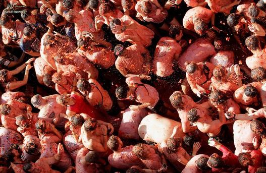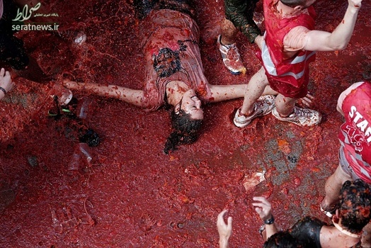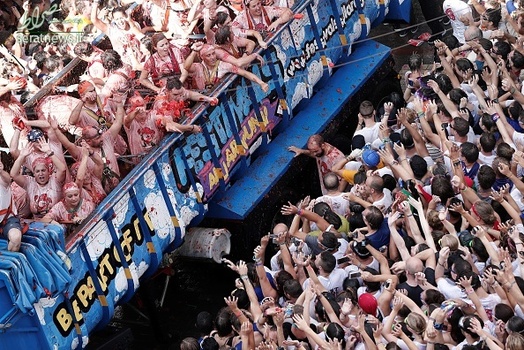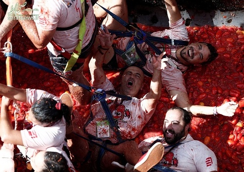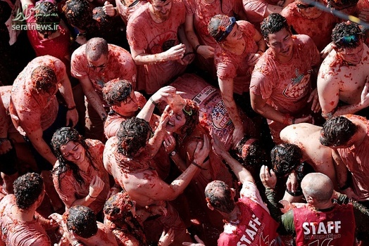 جشنواره سالانه گوجه فرنگی در منطقه بونل والنسیای اسپانیا برگزار شد. این جشنواره با حضور هزاران شرکت کننده برگزار و آنان با گوجه فرنگی به جان یکدیگر افتادند.