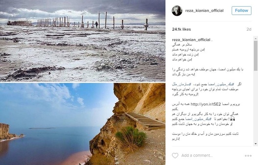 به گزارش خبرآنلاین آذربایجان غربی، بعد از سفر رضا کیانیان به ارومیه، وی با انتشار پستی در شبکه اجتماعی اینستاگرام، سرآغاز حرکت هنرمندان، ورزشکاران و مردم برای انتشار پست هایی با هشتگ "#من_درياچه_اروميه_هستم!" شد.