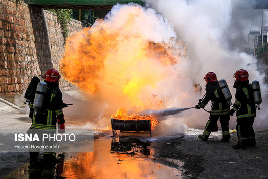 مانور حریق مایعات قابل اشتعال جهت آموزش بانوان آتش نشان صبح امروز شنبه (۱۳شهریور) در مشهد برگزار شد.