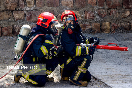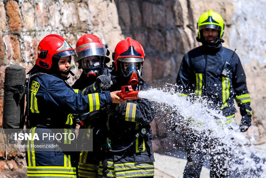 تصاویر/ مانور بانوان آتش نشان مشهد