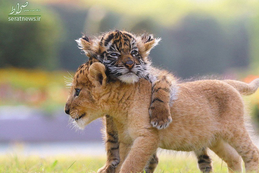 در اتفاقی نادر و جالب یک توله ببر و یک توله شیر در باغ وحش اوئیتا واقع در ژاپن با یکدیگر دوست شدهاند بطوری که به گفته مسئولان این باغ وحش آنها هرگز از یکدیگر جدا نشده و تبدیل به بهترین دوست هم شدهاند.