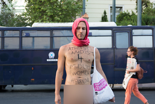 تصاویر/ برهنه شدن برای حمایت از زنان مسلمان!