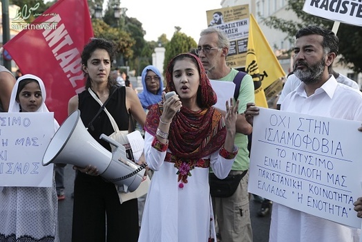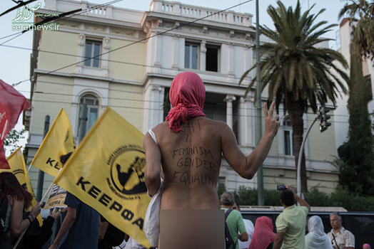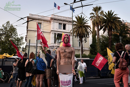 دهها نفر از مردم یونان در اعتراض به ممنوعیت پوشیدن لباس شنای اسلامی معروف به بورکینی در شهرهای ساحلی فرانسه مقابل سفارت این کشور در آتن تجمع کرده و خواهان لغو این ممنوعیت شدند. نکته عجیب حضور مردی بود که به شکل عریان و درحالیکه یک روسری سر کرده بود در این تجمع بود. 30 شهر ساحلی فرانسه تابستان امسال پوشیدن لباس شنای اسلامی زنان مشهور به بورکینی را ممنوع اعلام کردند.