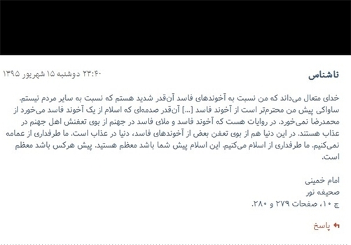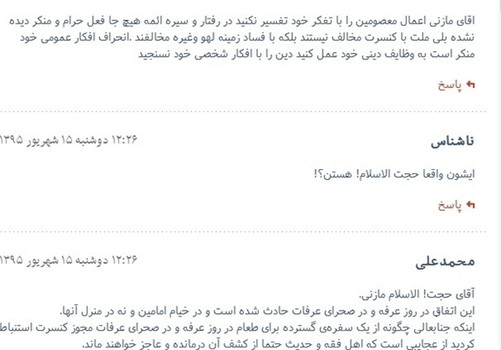 بر اساس این گزارش، پس از انتشار صحبتهای عضو کمیسیون فرهنگی مجلس، مخاطبان نظراتی در خصوص این اظهارنظر ارسال کردند که تعدادی از نظرات مرتبط با موضوع که در صحیفه نور، مجموعه آثار شهید مطهری و اصل روایت اشاره شده، در ادامه میآید: