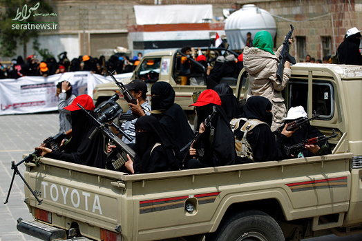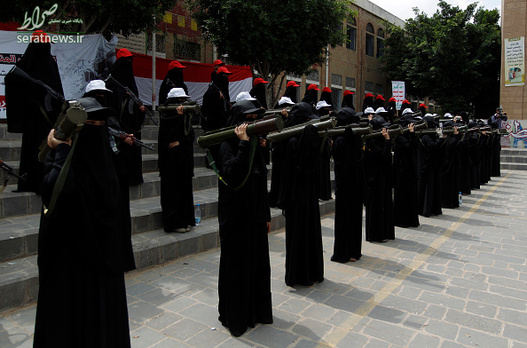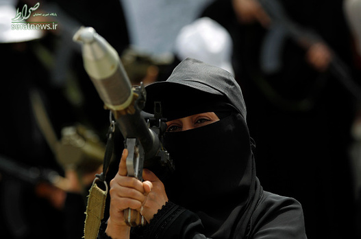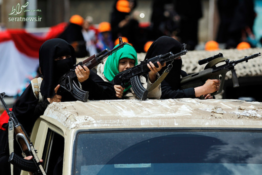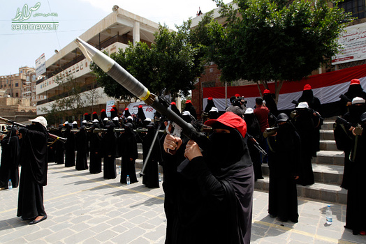 زنان و دختران یمنی در تظاهراتی که در صنعا پایتخت یمن برگزار شد با به دست گرفتن سلاح و موشکانداز آمادگی خود را برای مبارزه با مزدوران رژیم سعودی اعلام کردند.