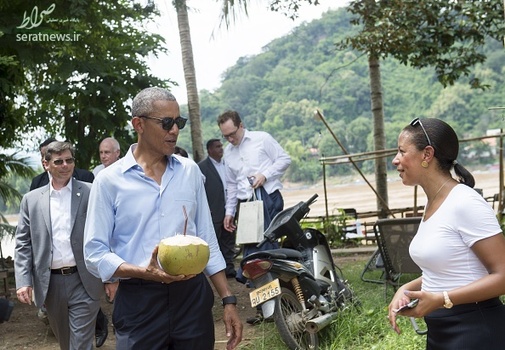 تصاویر/ نارگیل خوری اوباما در لائوس