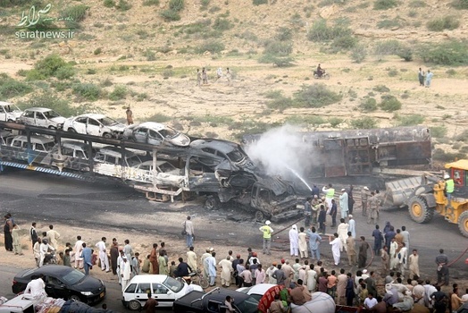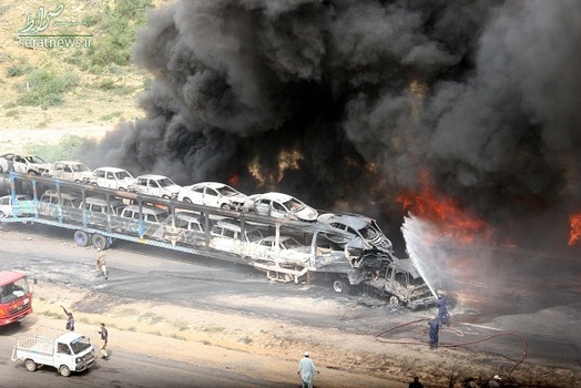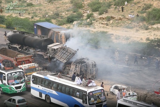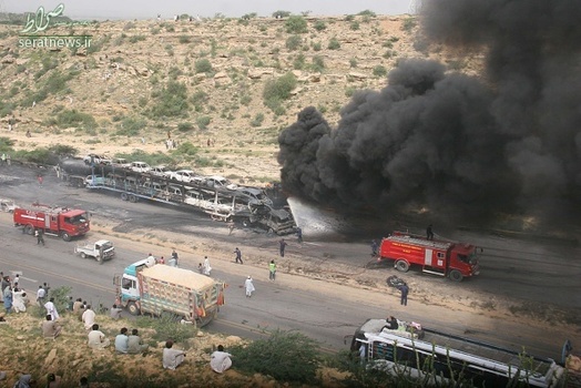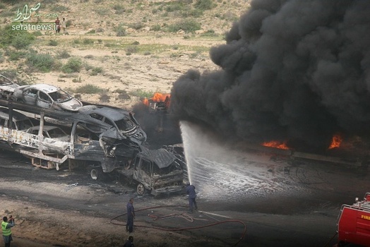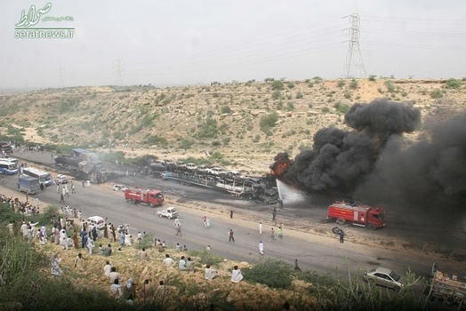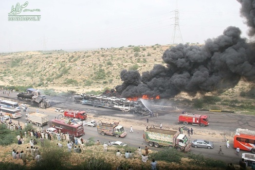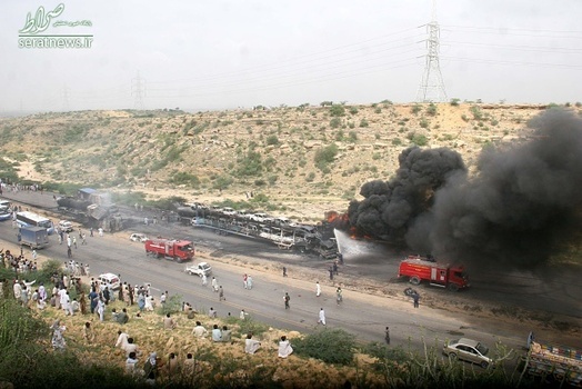 تصاویر/ انفجار تانکر نفت در بزرگراه کراچی