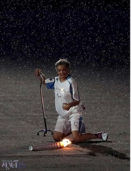 مارسیا مالسار (marcia malsar) یکی از شرکتکنندگان پارالمپیک 1984 در حالی که مشعل پارالمپیک ریو را در هوایی بارانی حمل میکرد تعادل خود را از دست داد و به زمین افتاد اما بلافاصله با شجاعت بلند شد و به مسیر خود ادامه داد.
