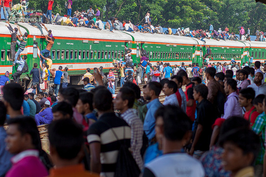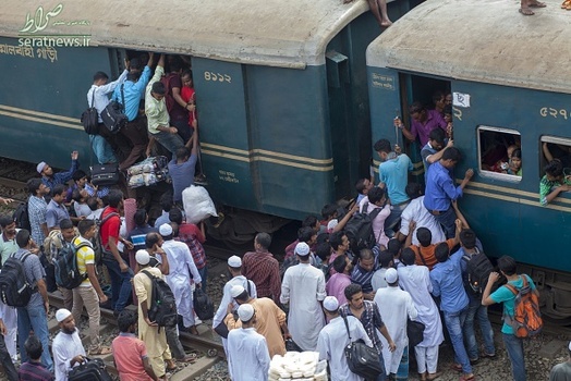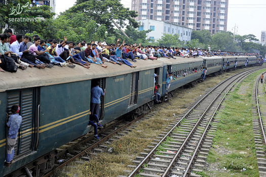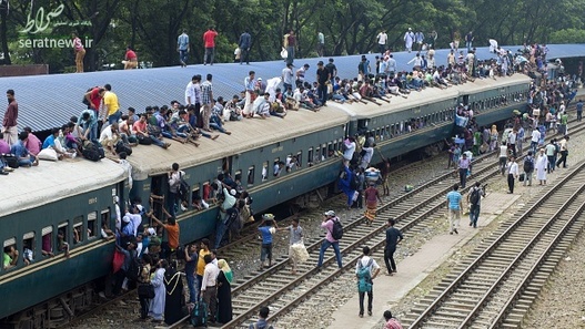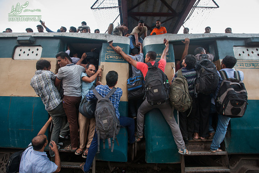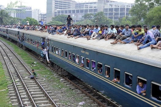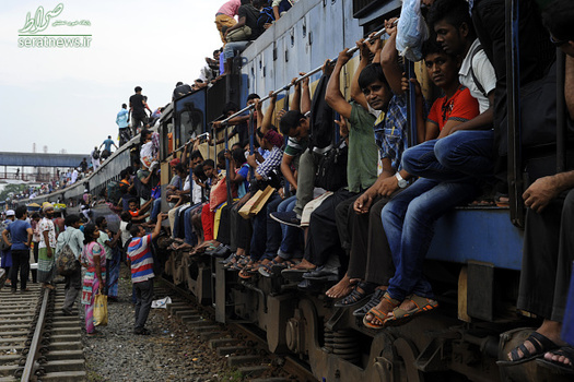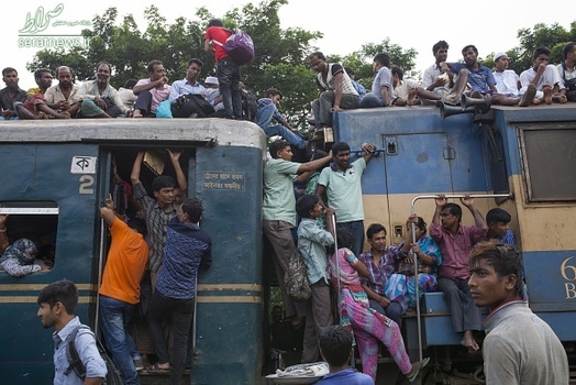مردم مسلمان بنگلادش در آستانه عید قربان سفر به روستاها و زادگاه خود را آغاز کرده اند. این سفرها معمولا با قطار انجام میشود و ایستگاههای قطار طی این روزها با ازدحام و شلوغی زیادی مواجه است. بسیاری از مردم بنگلادش با تکمیل شدن ظرفیت قطارها برای رسیدن به مقصد از بدنه قطارها و سقف آویزان میشوند.