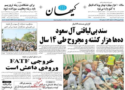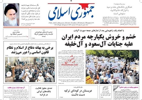صفحه اول روزنامههای شنبه ۲۰ شهریور
