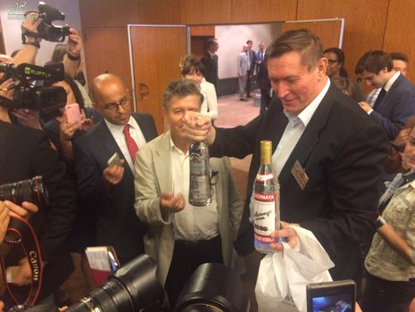 پس از توافق "جان کری" وزیر خارجه آمریکا با "سرگئی لاوروف" وزیر امور خارجه روسیه بر سر طرح برقراری آتشبس در سوریه که قرار است از روز دوشنبه 12 سپتامبر مصادف با عید قربان آغاز شود، خبرنگارانی که این کنفرانس خبری را در ژنو پایتخت سوئیس پوشش دادند با پیتزا و ودکا پذیرایی شدند. لاوروف پس پایان ماراتن 13 ساعته خود با جان کری به جمع خبرنگاران آمد و درحالیکه با کمک "الکساندر زورین" نماینده روسیه در نشست گروه بینالمللی نظارت بر آتشبس در سوریه پیتزا و ودکا را بین خبرنگاران و روزنامه نگاران توزیع میکرد گفت "پیتزا از آمریکاییها و ودکا از ما."