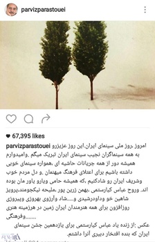 هنرمندان مختلف کشورمان به مناسبت روز ملی سینما ۲۱ شهریور ماه، پیام‌هایی را در صفحات شخصی اینستاگرامشان منتشر کردند.