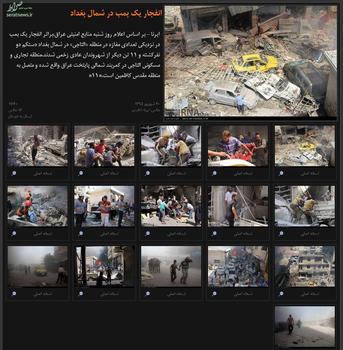 این خبرگزاری در این خبر با تیتر "انفجار یک بمب در شمال بغداد" 16 عکس با کیفیت بالا کار کرده و آن را تیتر یک بخش صفحه عکس خود قرار داده است.