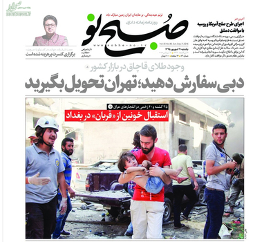 روزنامه صبح نو در تیتر اول خود این تصویر را با تیتر استقبال خونین از «قربان» در بغداد کار کرد نکته عجیب این رویداد به عامل این اتفاق برمیگردد که خبرگزاری رسمی جمهوری اسلامی ایران (ایرنا) بوده است.
