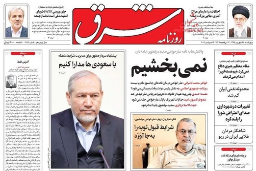 منتخب تصاویر صفحه نخست روزنامه‌های چهارشنبه ۲۴ شهریور