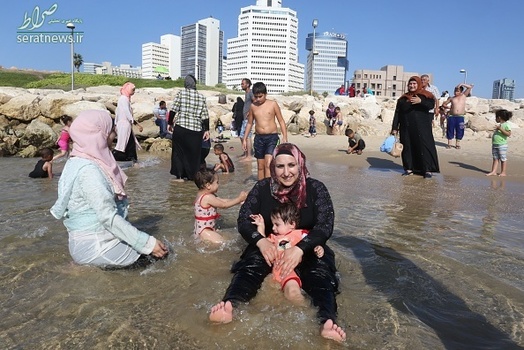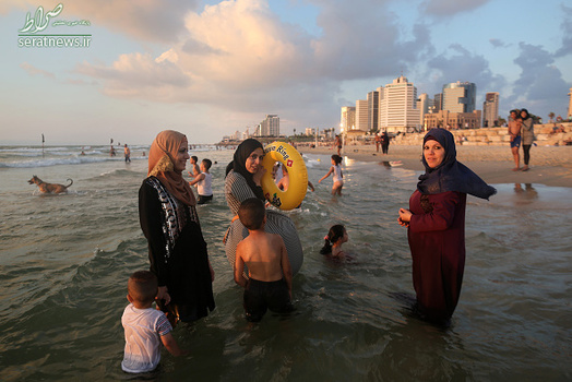 تصاویر/ شنای زنان فلسطینی در ساحل تل آویو