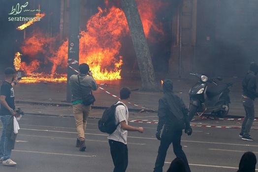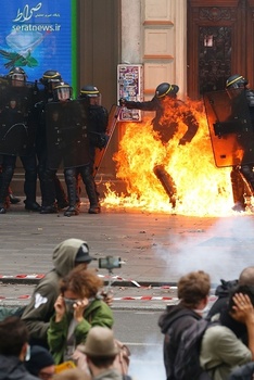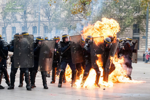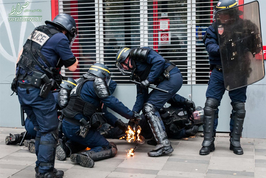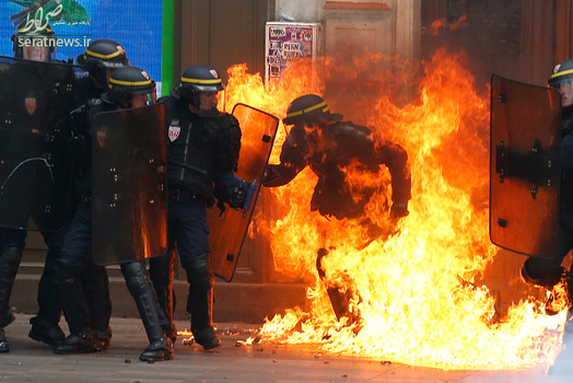 تصاویر/ افتادن آتش به جان پلیسهای فرانسه
