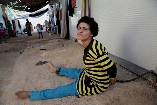 "ایمل" دختر 18 ساله سوری که از اختلالات روانی رنج میبرد به مدت سه سال است که برای جلوگیری از آسیب زدن به سالمندان و کودکان آواره اردوگاه آوارگان در حلب به وسیله طناب بسته شده است. این دختر با مادر خود در حلب زندگی میکرد که طی درگیریهای این منطقه از خانه و کاشانه خود آواره شد.
