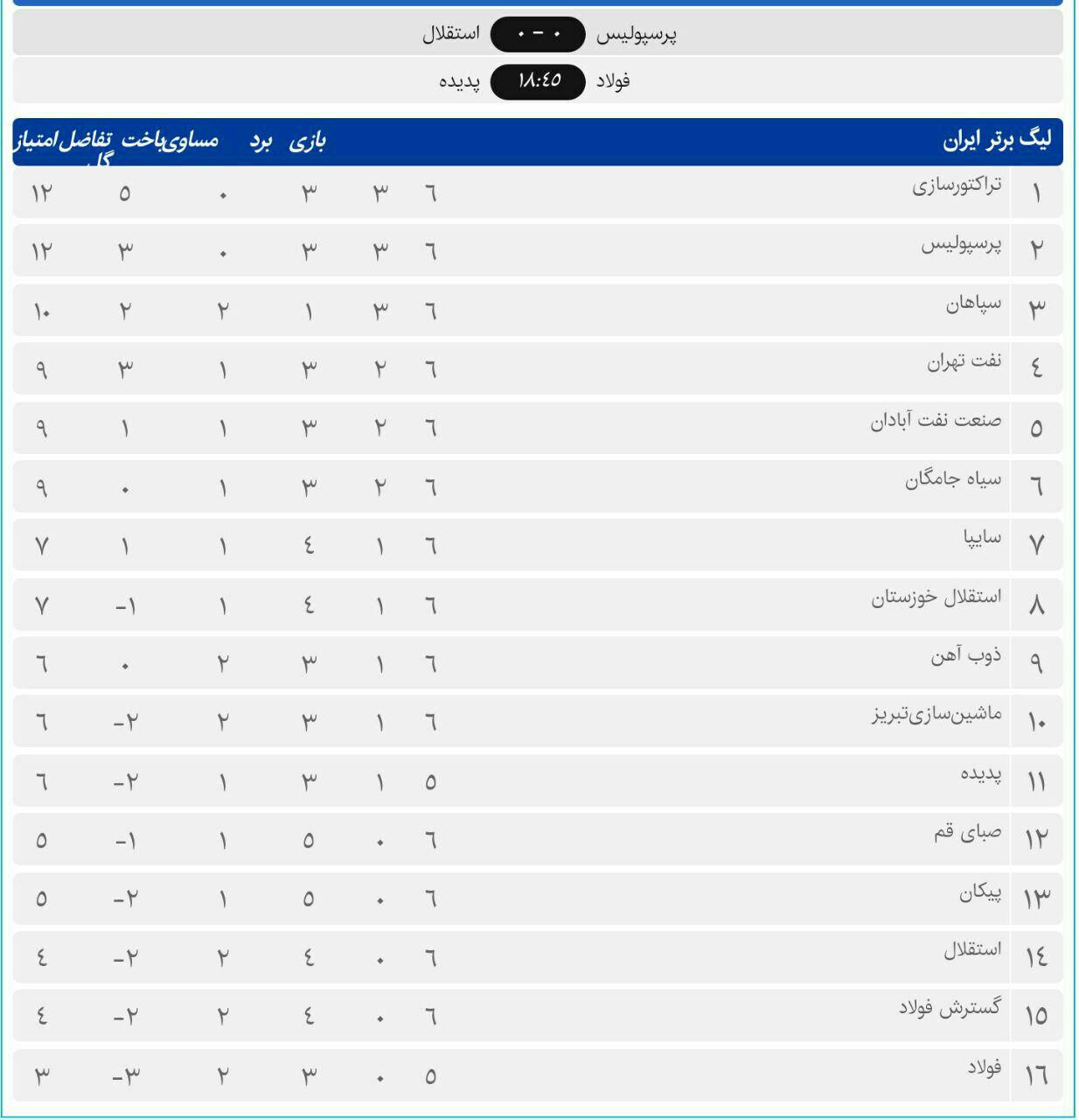 عکس/ جدول لیگ برتر بعد از دیدار دربی
