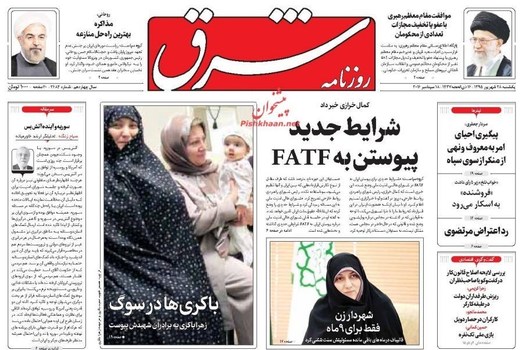 صفحه اول روزنامههای یکشنبه ۲۸ شهریور