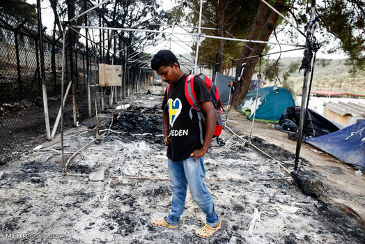 وقوع آتش سوزی در چادرها و کانتینرهای موجود در کمپ پناهجویان در جزیره لسبوس یونان، هزاران پناهجو را مجبور به فرار از این کمپ کرد.