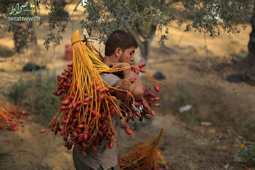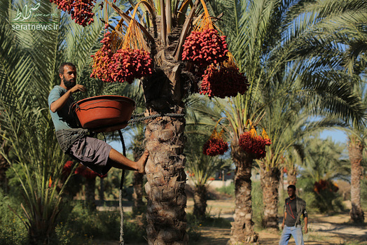 با آغاز فصل برداشت خرما؛ کشاورزان منطقه دیر البلح در مرکز غزه از نخلستانهای این منطقه کار برداشت خرما را آغاز و آن را برای توزیع به بازار میبرند.
