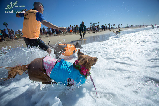 رقابتهای سالانه موج سواری سگها با کایت روی آبهای خروشان در هانتینگتون بیچ ایالت کالیفرنیای آمریکا برگزار شد.