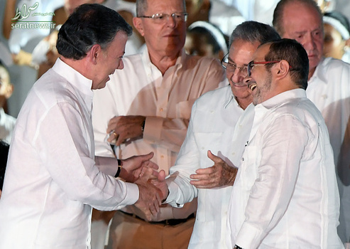 "خوان مانوئل سانتوس" رئیس جمهور کلمبی٬ و "تیمولیون خیمهنز" معروف به تیموچنکو رهبر فارک طی مراسمی ویژه در شهر تاریخی کارتاخنا، با خودکاری که از پوکه گلوله ساخته شده بود توافق صلح را امضا و به جنگ 52 ساله ای که بیش از 260 هزار کشته برجای گذاشت پایان دادند. بیش از 2500 نفر از جمله برخی چهره های سیاسی جهان مانند "بان کیمون"٬ دبیرکل سازمان ملل متحد و "رائول کاسترو"، رئیس جمهوری کوبا در مراسم شرکت کردند.