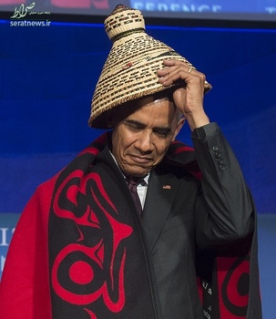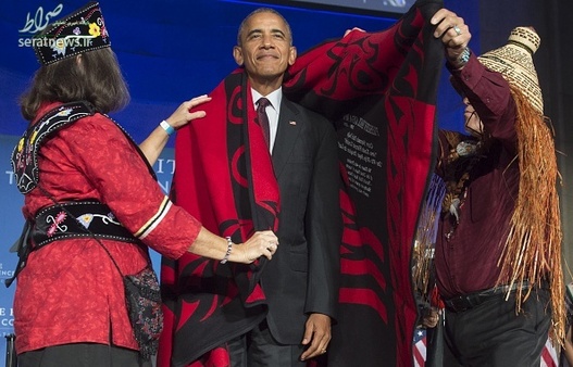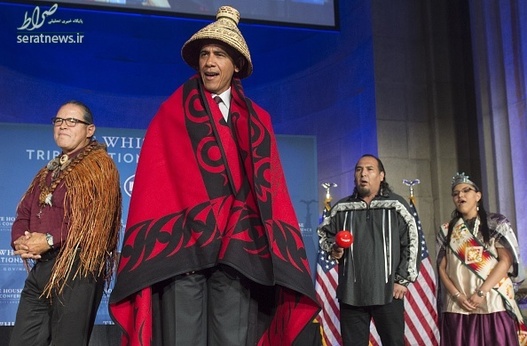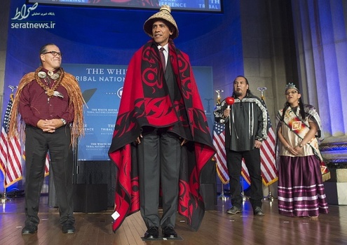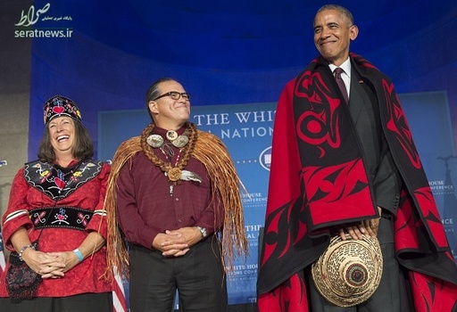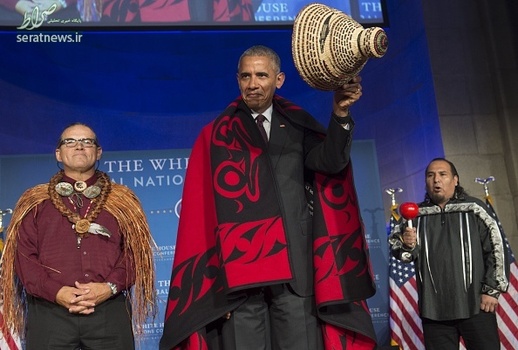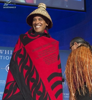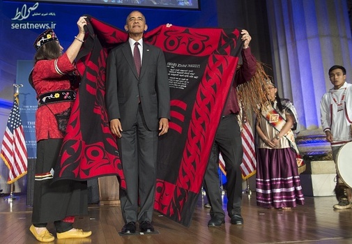 "باراک اوباما" رئیس جمهور آمریکا در کنفرانس سالانه ملتهای قبیلهای کاخ سفید 2016 که ر در سالن اندرو ملون واشنگتن برگزار شد لباس قبیلهای به تن کرد.